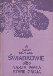 Świadkowie albo nasza mała stabilizacja / Tadeusz Różewicz. - [Wydanie 6]. - Kraków : Wydawnictwo Literackie, 1986. - 45, [2] strony : fotografie ; 21 cm.