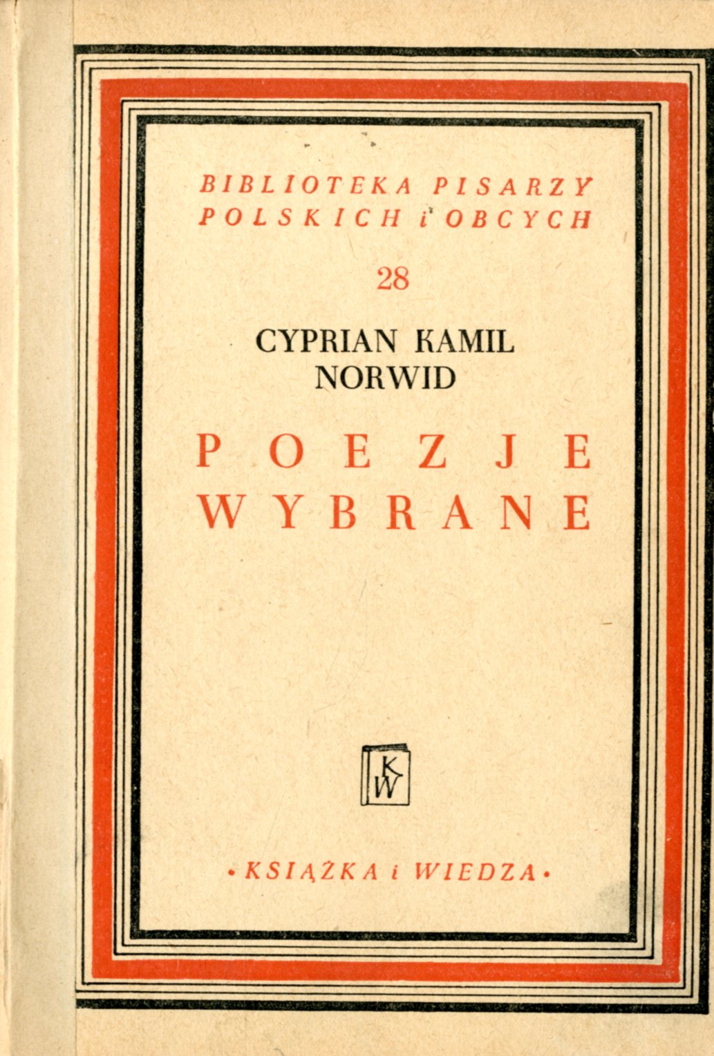 Poezje wybrane / Cyprian Kamil Norwid ; opracował Mieczysław Jastrun. - Wyd. 2 rozsz. i popr. - Warszawa : "Książka i Wiedza", 1951. - X, [2], 138, [5] s. ; 20 cm.