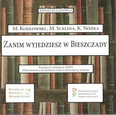Zanim wyjedziesz w Bieszczady / Maciej Kozłowski, Marcin Scelina, Kazimierz Nóżka. - Warszawa : Fundacja Edukacji Nowoczesnej, 2021. - 1 płyta audio (CD-DAISY) : zapis cyfrowy, stereo ; 12 cm.