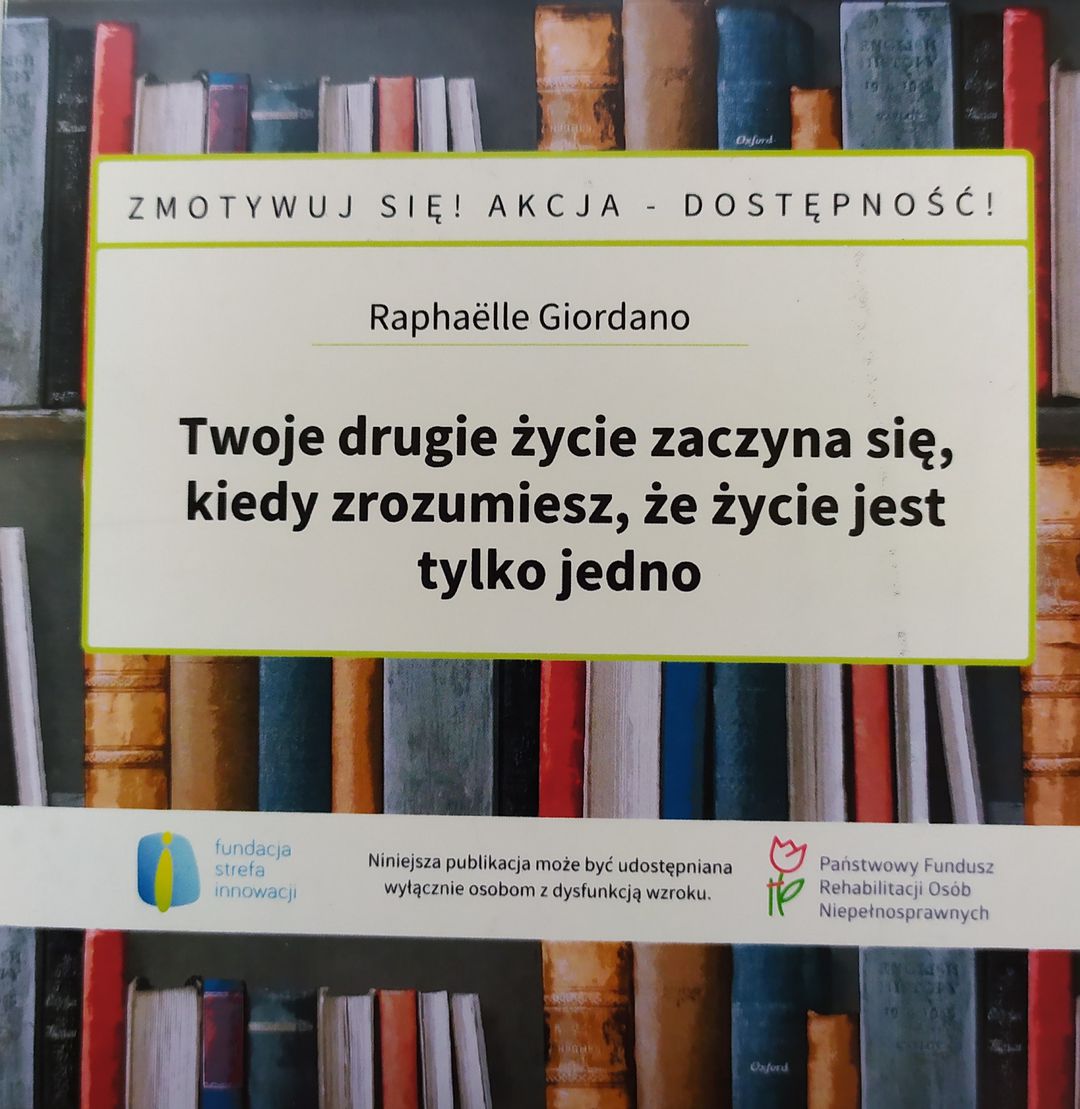 Twoje drugie życie zaczyna się, kiedy zrozumiesz, że życie jest tylko jedno / Raphaëlle Giordano. - Warszawa: Fundacja Strefa Innowacji, copyright 2025. - 1 płyta audio (CD-DAISY) : zapis cyfrowy, stereo ; 12 cm.